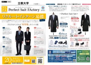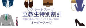 専門の就活アドバイザーが必要なアイテムのアドバイスや、インターン等で使えるフレッシュなスタイルの提案もしてくれます。立教生向けのお得なセットセールも要チェックです。