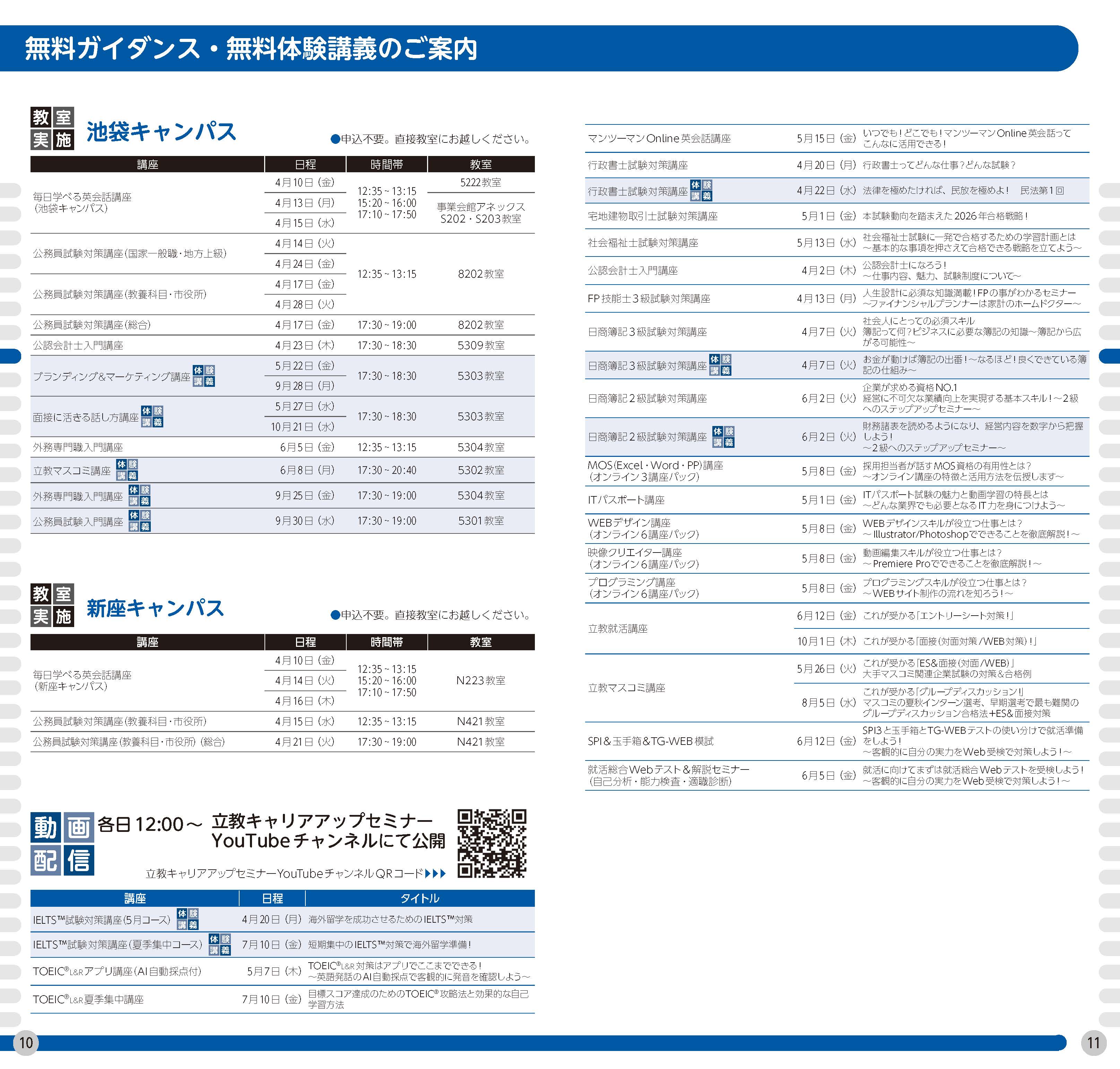 無料ガイダンス・体験講義