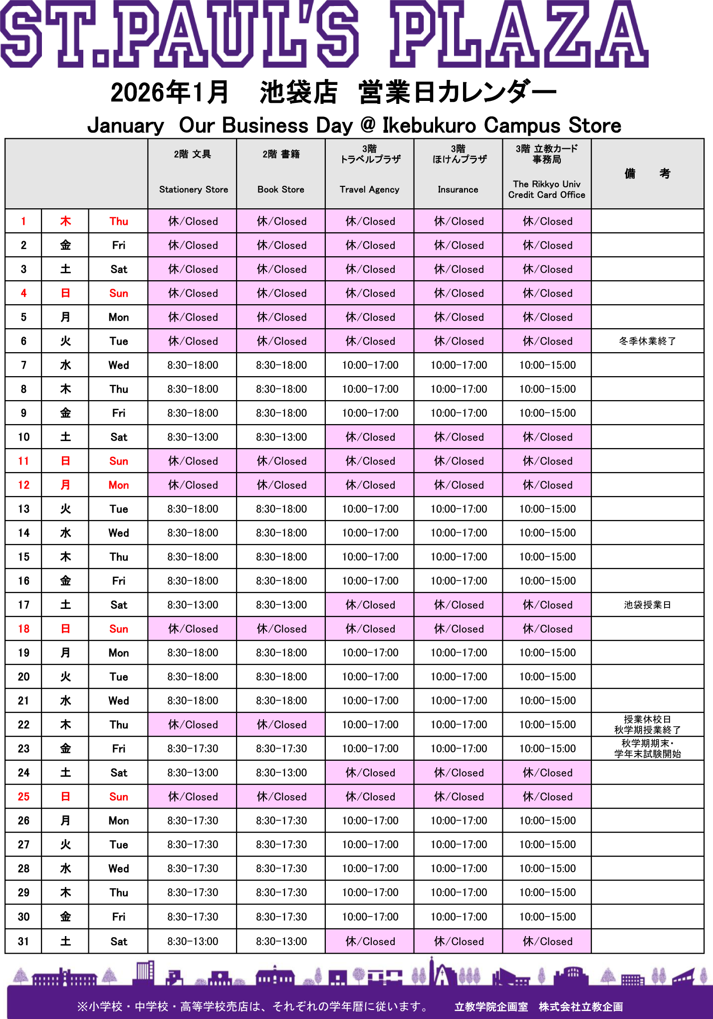4月営業日カレンダー 5月営業日カレンダー 6月営業日カレンダー 7月営業日カレンダー 8月営業日カレンダー 9月営業日カレンダー 10月営業日カレンダー 11月営業日カレンダー 12月営業日カレンダー 1月営業日カレンダー
