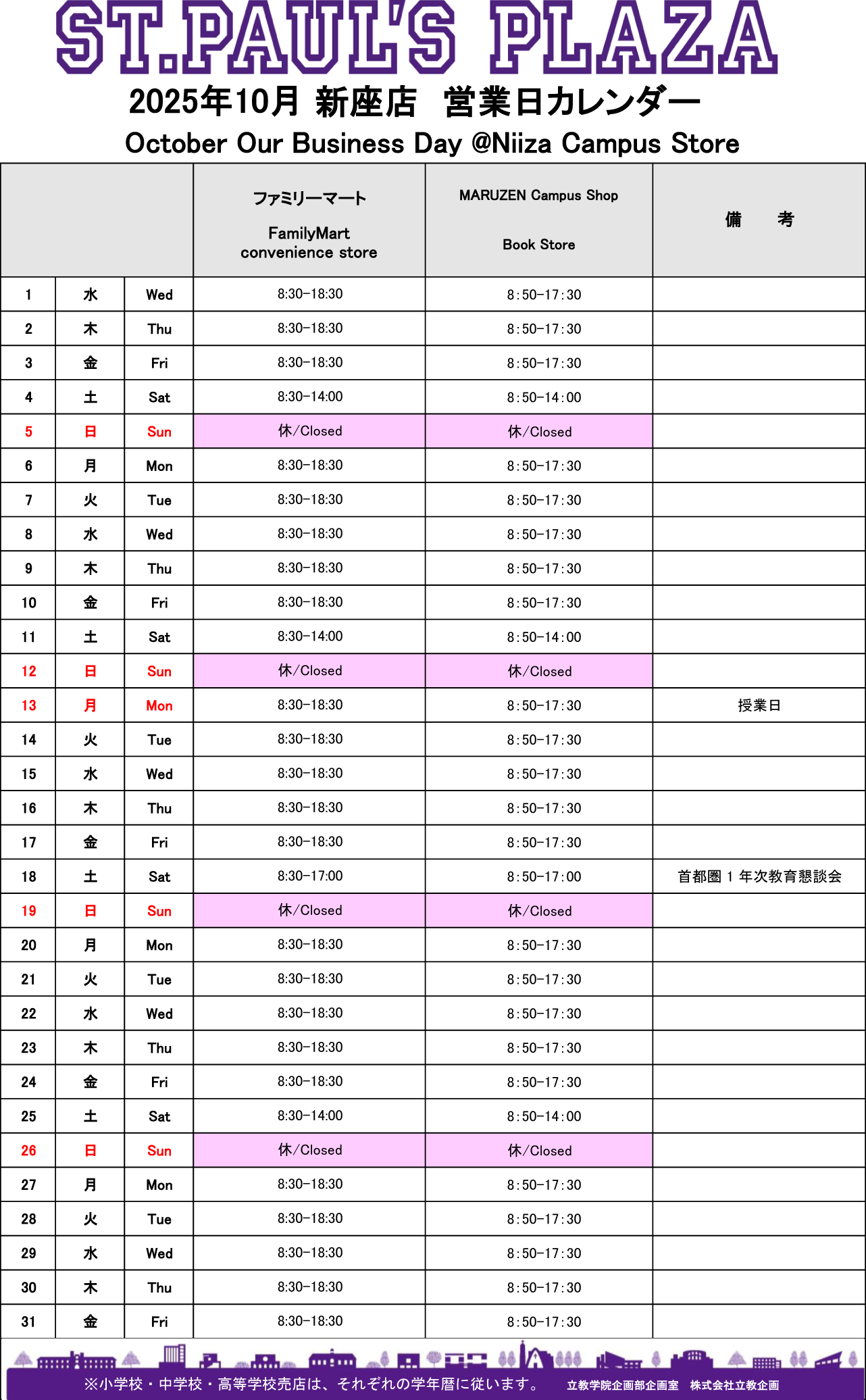 4月営業日カレンダー 5月営業日カレンダー 6月営業日カレンダー 7月営業日カレンダー 8月営業日カレンダー 9月営業日カレンダー 10月営業日カレンダー