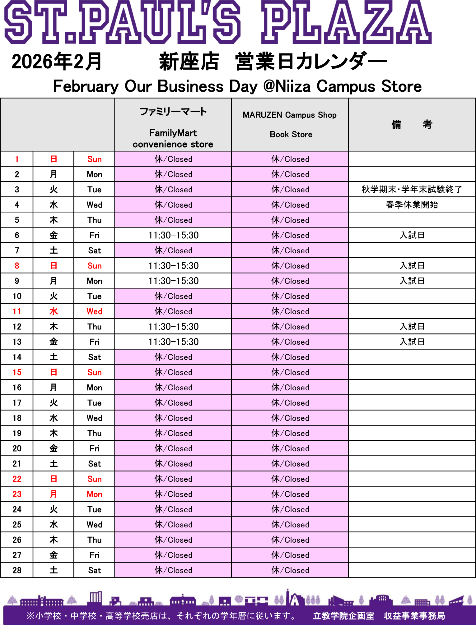 4月営業日カレンダー 5月営業日カレンダー 6月営業日カレンダー 7月営業日カレンダー 8月営業日カレンダー 9月営業日カレンダー 10月営業日カレンダー 11月営業日カレンダー 12月営業カレンダー 1月営業カレンダー 2月営業カレンダー 3月営業カレンダー